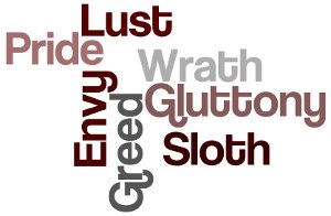 Take lust, for example. Oh, it seems so harmless–a little fun in the bedroom. A bit of slap and tickle, a bit of a giggle and gasp. Where would the violence be in lust? Look into the Marquis de Sade and see where unbridled lust takes you. Into the whipping chamber, the torture and rape and the sick scenes of sado masochism. Ordinary sex grows dull so the need for excitement and thrill and physical sensation demands…violence.