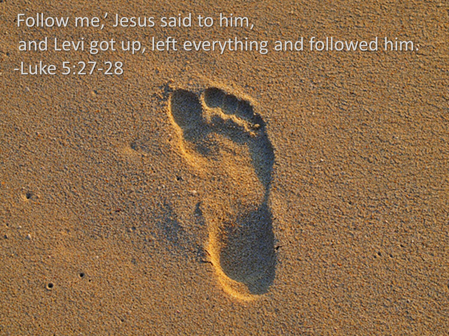 Jesus noticed a tax collector, Levi by name, sitting by the customs house, and said to him, ‘Follow me.’ And leaving everything he got up and followed him.