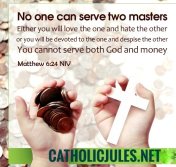 ‘No servant can be the slave of two masters: he will either hate the first and love the second, or treat the first with respect and the second with scorn. You cannot be the slave both of God and of money.’