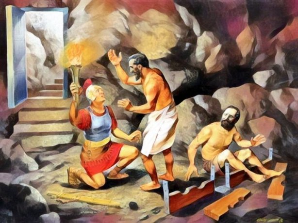 Late that night Paul and Silas were praying and singing God’s praises, while the other prisoners listened. Suddenly there was an earthquake that shook the prison to its foundations. All the doors flew open and the chains fell from all the prisoners. When the gaoler woke and saw the doors wide open he drew his sword and was about to commit suicide, presuming that the prisoners had escaped. But Paul shouted at the top of his voice, ‘Don’t do yourself any harm; we are all here.’ The gaoler called for lights, then rushed in, threw himself trembling at the feet of Paul and Silas, and escorted them out, saying, ‘Sirs, what must I do to be saved?’ They told him, ‘Become a believer in the Lord Jesus, and you will be saved, and your household too.’ Then they preached the word of the Lord to him and to all his family. Late as it was, he took them to wash their wounds, and was baptised then and there with all his household. Afterwards he took them home and gave them a meal, and the whole family celebrated their conversion to belief in God.