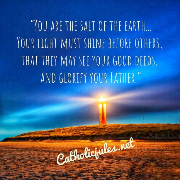 Your light must shine in the sight of menJesus said to his disciples: ‘You are the salt of the earth. But if salt becomes tasteless, what can make it salty again? It is good for nothing, and can only be thrown out to be trampled underfoot by men.