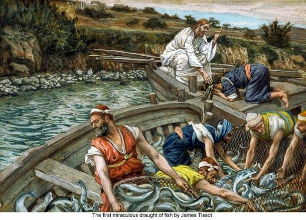 Luke 5:1-11They left everything and followed himJesus was standing one day by the Lake of Gennesaret, with the crowd pressing round him listening to the word of God, when he caught sight of two boats close to the bank. The fishermen had gone out of them and were washing their nets. He got into one of the boats – it was Simon’s – and asked him to put out a little from the shore. Then he sat down and taught the crowds from the boat. When he had finished speaking he said to Simon, ‘Put out into deep water and pay out your nets for a catch.’ ‘Master,’ Simon replied, ‘we worked hard all night long and caught nothing, but if you say so, I will pay out the nets.’ And when they had done this they netted such a huge number of fish that their nets began to tear, so they signalled to their companions in the other boat to come and help them; when these came, they filled the two boats to sinking point. When Simon Peter saw this he fell at the knees of Jesus saying, ‘Leave me, Lord; I am a sinful man.’ For he and all his companions were completely overcome by the catch they had made; so also were James and John, sons of Zebedee, who were Simon’s partners. But Jesus said to Simon, ‘Do not be afraid; from now on it is men you will catch.’ Then, bringing their boats back to land, they left everything and followed him.