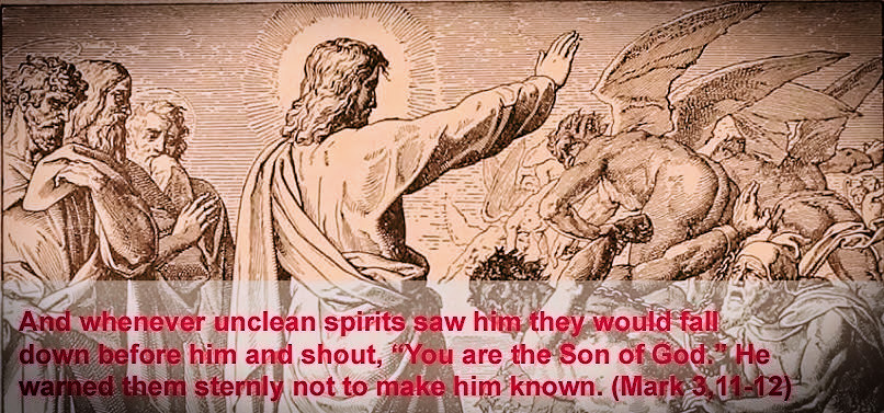 And as God by His Word “rebuked” the forces of chaos in creating the world (see Psalms 104:7; Job 26:10–12), and again rebuked the Red Sea so the Israelites could make their exodus (see Psalm 106:9), Mark uses the same word to describe Jesus rebuking the demons (see Mark 4:39; Zechariah 3:2).