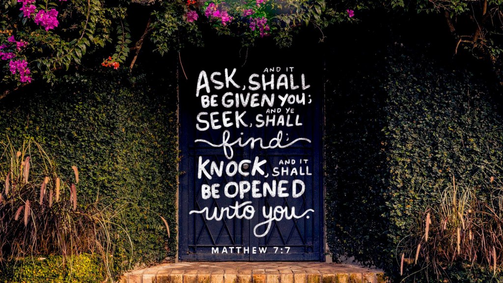 Jesus said to his disciples, ‘Ask, and it will be given to you; search, and you will find; knock, and the door will be opened to you. For the one who asks always receives; the one who searches always finds; the one who knocks will always have the door opened to him. Is there a man among you who would hand his son a stone when he asked for bread? Or would hand him a snake when he asked for a fish? If you, then, who are evil, know how to give your children what is good, how much more will your Father in heaven give good things to those who ask him!