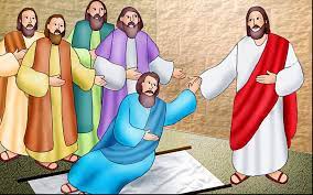 Jesus got in the boat, crossed the water and came to his own town. Then some people appeared, bringing him a paralytic stretched out on a bed. Seeing their faith, Jesus said to the paralytic, ‘Courage, my child, your sins are forgiven.’ And at this some scribes said to themselves, ‘This man is blaspheming.’ Knowing what was in their minds Jesus said, ‘Why do you have such wicked thoughts in your hearts? Now, which of these is easier to say, “Your sins are forgiven,” or to say, “Get up and walk”? But to prove to you that the Son of Man has authority on earth to forgive sins,’ – he said to the paralytic – ‘get up, and pick up your bed and go off home.’ And the man got up and went home. A feeling of awe came over the crowd when they saw this, and they praised God for giving such power to men.