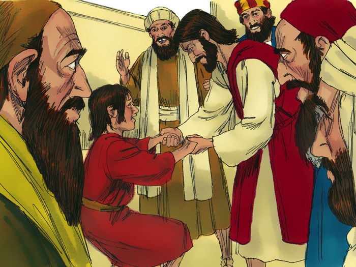 When Jesus had crossed in the boat to the other side, a large crowd gathered round him and he stayed by the lakeside. Then one of the synagogue officials came up, Jairus by name, and seeing him, fell at his feet and pleaded with him earnestly, saying, ‘My little daughter is desperately sick. Do come and lay your hands on her to make her better and save her life.’ Jesus went with him and a large crowd followed him; they were pressing all round him.