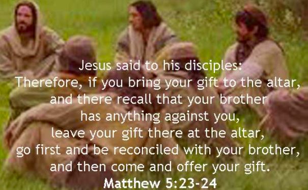 Here is the truth! Because we follow the way, the truth and the life! We renounce all sin because we choose life! And there is no life without the Lord our God present in our lives. We who walk humbly with Him know that it through our Lord and Saviour Jesus Christ alone that we have life to the full. In His great mercy and love He has forgiven us our many heinous sins against Him. And it is a sin therefore to withhold our mercy from all who have hurt us. For He our loving Lord did not withhold His mercy. In forgiving we ourselves are set free. That is why Jesus our Lord says that we have leave our offering there before the altar, go and be reconciled with your brother or sister first, and only then come back and present our offering. For our greatest offering is a humble contrite spirit who loves the Lord our God first above all else with all our heart, mind, soul and strength; with that same love for Him we must love our brethren. Amen