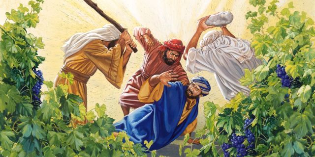 Jesus said to the chief priests and the elders of the people, ‘Listen to another parable. There was a man, a landowner, who planted a vineyard; he fenced it round, dug a winepress in it and built a tower; then he leased it to tenants and went abroad. When vintage time drew near he sent his servants to the tenants to collect his produce. But the tenants seized his servants, thrashed one, killed another and stoned a third. Next he sent some more servants, this time a larger number, and they dealt with them in the same way. Finally he sent his son to them. “They will respect my son” he said. But when the tenants saw the son, they said to each other, “This is the heir. Come on, let us kill him and take over his inheritance.” So they seized him and threw him out of the vineyard and killed him. Now when the owner of the vineyard comes, what will he do to those tenants?’ They answered, ‘He will bring those wretches to a wretched end and lease the vineyard to other tenants who will deliver the produce to him when the season arrives.’ Jesus said to them, ‘Have you never read in the scriptures: