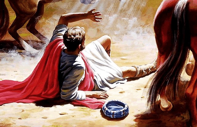 ‘I was on that journey and nearly at Damascus when about midday a bright light from heaven suddenly shone round me. I fell to the ground and heard a voice saying, “Saul, Saul, why are you persecuting me?” I answered: Who are you, Lord? and he said to me, “I am Jesus the Nazarene, and you are persecuting me.” The people with me saw the light but did not hear his voice as he spoke to me. I said: What am I to do, Lord? The Lord answered, “Stand up and go into Damascus, and there you will be told what you have been appointed to do.” The light had been so dazzling that I was blind and my companions had to take me by the hand; and so I came to Damascus.