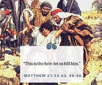 Jesus said to the chief priests and the elders of the people, ‘Listen to another parable. There was a man, a landowner, who planted a vineyard; he fenced it round, dug a winepress in it and built a tower; then he leased it to tenants and went abroad. When vintage time drew near he sent his servants to the tenants to collect his produce. But the tenants seized his servants, thrashed one, killed another and stoned a third. Next he sent some more servants, this time a larger number, and they dealt with them in the same way. Finally he sent his son to them. “They will respect my son” he said. But when the tenants saw the son, they said to each other, “This is the heir. Come on, let us kill him and take over his inheritance.” So they seized him and threw him out of the vineyard and killed him. Now when the owner of the vineyard comes, what will he do to those tenants?’ They answered, ‘He will bring those wretches to a wretched end and lease the vineyard to other tenants who will deliver the produce to him when the season arrives.’ Jesus said to them, ‘Have you never read in the scriptures:
