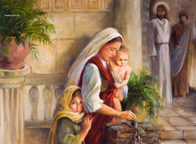 He sat down opposite the treasury and watched the people putting money into the treasury, and many of the rich put in a great deal. A poor widow came and put in two small coins, the equivalent of a penny. Then he called his disciples and said to them, ‘I tell you solemnly, this poor widow has put more in than all who have contributed to the treasury; for they have all put in money they had over, but she from the little she had has put in everything she possessed, all she had to live on.’