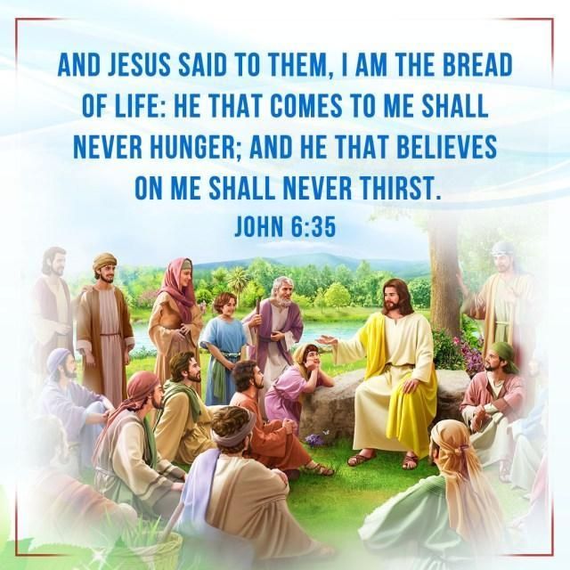 Jesus said to them, ‘I am the bread of life; whoever comes to me shall not hunger, and whoever believes in me shall never thirst.’